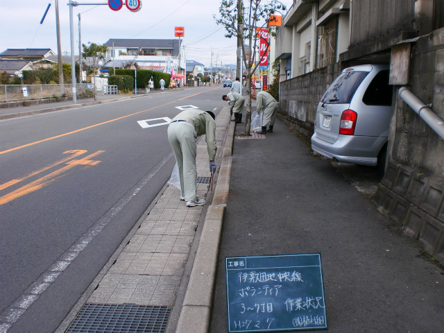 平成27年2月7日(土)、鹿児島市小野公園前と伊敷団地中央線にて道路清掃作業を行いました。