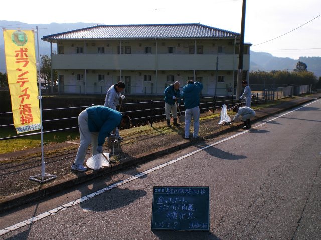 南薩営業所でボランティアを行いました 2015/02/09 Tweet 平成27年2月7日(土)、南薩営業所管内の県道19号鹿児島川辺線及び国道225号線で道路清掃作業を行いました。 川辺二日市の開催と重なり、非常に交通量が多い一日でしたが事故もなく完了することができました。