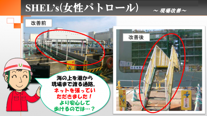 現場技術員の方から「慣れている我々では見落としがちな小さな危険の芽にも、女性の目だと気付いてくれてありがたい。」との言葉をいただきました。m(_ _)m